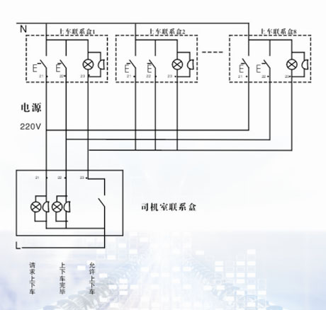 性能特點:1.按動聯(lián)系盒按鈕:聯(lián)系盒“請求上下車”指示燈亮、蜂鳴器響(時間與按鈕動作同步);司機(jī)室報警蜂鳴器(或語言)同步響,司機(jī)室主機(jī)顯示文本提示“有人請求上下車”;該操作如延時60秒無下步動作響應(yīng),自動復(fù)位清除。2.司機(jī)如同意登機(jī),按動應(yīng)答按鈕:聯(lián)系盒“允許上下車”指示燈亮,蜂鳴器長響;司機(jī)室主機(jī)顯示文本提示“有人正在上下車”(或語音);同步切斷大車行走控制回路。3.上下車完成后,按動聯(lián)系盒按鈕:聯(lián)系盒“允許上下車”指示燈滅、蜂鳴器停,“上下車完成”指示燈亮;司機(jī)報警蜂鳴器響(或語音),司機(jī)室主機(jī)顯示文本提示“上下車完成”。4.按動司機(jī)就答按鈕:聯(lián)系盒“上下車完成”指示燈滅;司機(jī)室主機(jī)聲光消;同步恢復(fù)大車行走控制回路。5.司機(jī)同意上車操作后如延時120秒后,如無下一步操作;司機(jī)室主機(jī)報警,提示“上下車超時,請司機(jī)確認(rèn)”,按動司機(jī)室應(yīng)答按鈕,解除所有操作,復(fù)位。